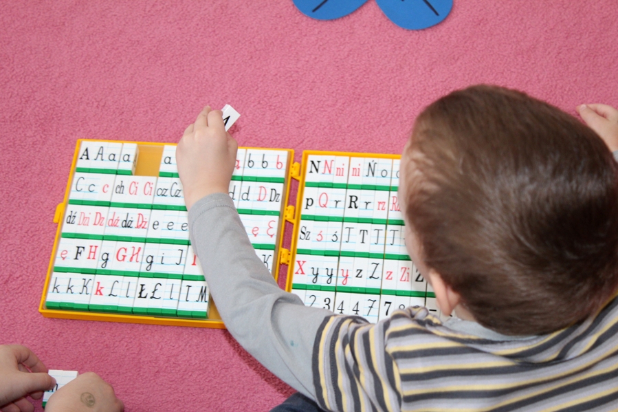 - Porównywanie i identyfikowanie liter - dzieci uczą się tego, pracując na klockach logo. Bawią się nimi, manipulują, układają budowle, jednocześnie poznając wygląd i kształt poszczególnych liter. Dziecko uczy się, że każda litera ma 4 warianty - mała pisana i drukowana, wielka pisana i drukowana. Każdy z tych wariantów jest umieszczony na klockach.