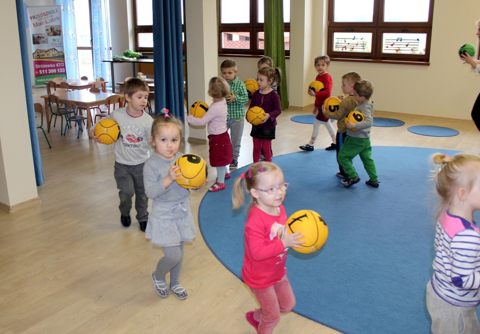 Pierwszy kontakt dzieci z piłkami to ogromna radość i entuzjazm. Każde dziecko bawi się swoją piłką. Może nią kozłować, rzucać, toczyć, celować, układać.